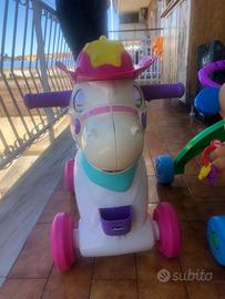 Giochi per bambini primi passi, uno della fisher price e’snche un gioco interattivo con pulsanti e attività x bimbi, l altro è cavallino della chicco, il prezzo è sigolo a giocattolo, solo scambio a mano