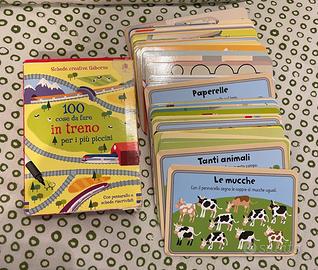 4 giochi per bambini di USBORNE ed 1 puzzle magnetico di THE PURPLE COW. Sono giochi di fantasia e disegno da portare comodamente in viaggio!