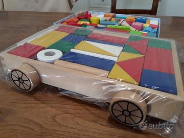 carrettino da tirare e montare e cassetta di pezzi vari. molto costruttivo.
