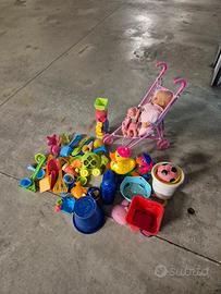 Vendo in blocco giochi da spiaggia usati, con passeggino e bambolotti.