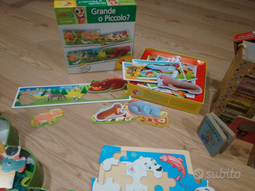 Giochi misti,puzzle,libri costruzione,incastri e giochi manuali. Tutti integri e quasi tutti con la loro confezione originale. Vendo in blocco, prezzo simbolico.