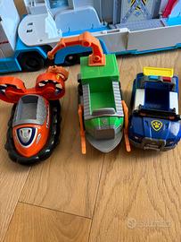 Paw Patroller centro operetativo funzionante con suoni. 6 veicoli grandi Paw Patrol. 5 personaggi. Ottime condizioni.