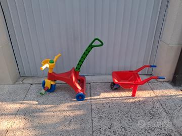Vendo triciclo,cariola e seggiolina da esterno per bambini,in perfette condizioni.