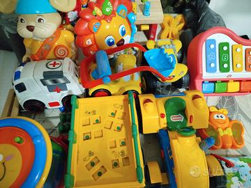 regalo giochi vari per bambini da 6 mesi a 3 anni funzionanti, basta cambiare le batterie, come da foto sono tutti giochi diversi e naturalmente da pulire perché riposti in cantina da tempo.