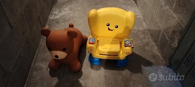 vendo causa non utilizzo tenuti bene, un cavalluccio a dondolo, una sedia che parla, un orso e un carrello primi passi.