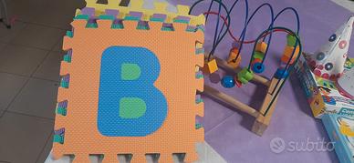 Tappeto gioco NUOVO con borsone per trasportarlo o per riporre in ordine i pezzi e gioco in legno marca PLAYTIVE . Per bimbi 0 ...3 anni ..Tutto insieme a 30 €
