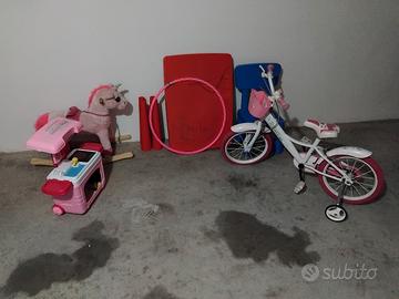 vendo giochi compresi un tavolino con sedia piu un cavallino da bambina piu una bicicletta da bambina tutto 35 €