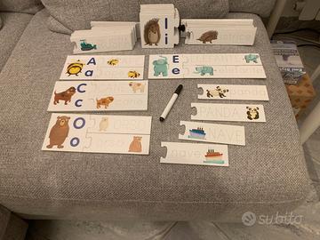 Scrivendo con il pennarello in dotazione la scritta puo’ essere cancellata cosi’ da riutilizzare le tessere innumerevoli volte ripetendo l’esercizio.