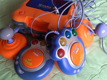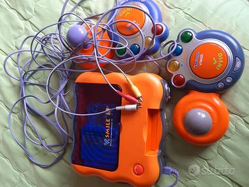 Vendesi Consolle V.Smile Apprendo vtech. Età consigliata dal produttore: da 3 ad 8 anni utilissimo per imparare numeri, lettere, forme e colori e accrescere abilità logiche e cognitive. Prodotto originale Giochi Preziosi corredato da due joypad originali e tre cartucce gioco come da foto. VSmile è un sistema di apprendimento In Tv esclusivo che fa vivere ai bambini magiche avventure, imparando e divertendosi direttamente alla tv. Grafica a colori, musichette divertenti, si può giocare anche in due. Sicuro e facile da usare con un design compatto. Funziona con 3 batterie mezza torcia "C" o con cavo (non inclusi). Scatola originale andata dispersa. Usato ma in ottime condizioni. Se interessati solo alle cartucce singole bastano 10 euro ciascuna o 20 euro le tre in blocco. Contattatemi per appuntamento e per visionare la consolle.
