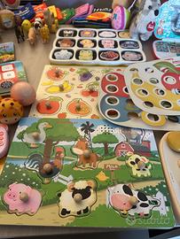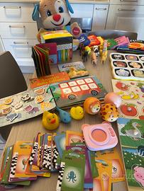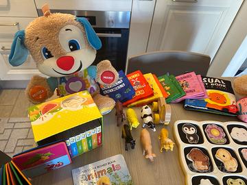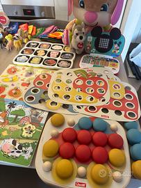 Vendo in blocco giochi prima infanzia: Fantacolor della quercetti; Incastri sonori della fattoria della wood’n play; Gioco incastri frutta ; Gioco incastri forme magnetico ; Cagnolino peluche della trudi; Disney baby clementoni; Sorellina della fischer price (due livelli di apprendimento); Cagnolino della fischer price (tre livelli di apprendimento); Set animali; Leone con ruote della wood’n play; Giochi acqua; Palline antistress animali; 6 libri di stoffa prime parole; 1 libro di stoffa della calma della visual quiet book; 10 librottoni con immagini; Libro + puzzle animali della fattoria della usborne; Busy book colori e forme; Talking flash card italiano. Tutti i giochi sono in ottime condizioni.