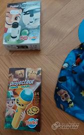 Vendo come da foto, vari giochi per bambino compresi mini microscopio, mini prioettore, microfono, Paw Patrol e Ferrari).