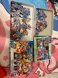 Giochi vari, Due puzzle bambini. Pezzi piccoli. Adatti per bambini dai 5+. Personaggi Paw Patrol e Stitch . Gioco educativo Carte Memo Stitch. (Nuovo, aperto mai usato), gioco Lavagnetta luminosa crea immagini con i chiodini, marca quarcetti. Funzionante con pile. Totale 4 giochi