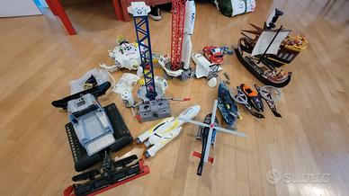 Vendesi playmobil originali in blocco. Space shuttle, mission to mars, camion e macchina pompieri, astronavi varie, elicottero pompieri, galea romana, nave pirati, spazzaneve, pezzi e personaggi vari. Non assicuro ci siano tutti i pezzi ma con ottima probabilità ci sono tutti, bisogna solo cercare. Vendo come pezzi sfusi.