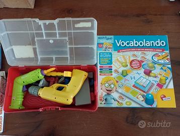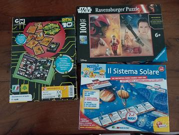 Prima foto Migoga 150 pezzi vendo a 9 euro. Seconda foto Sistema solare a 5 euro e gli altri 2 a 3 euro. Terza foto a 4 euro. Quarta foto a 3 gli arnesi e a 4 il vocabolario. Ultima foto il trenino di legno a 4 euro e gli altri a 2 euro cadauno
