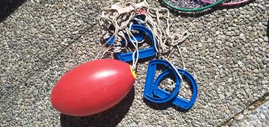 Giochi da spiaggia, da giardino, o da casa, giochi come bocce, palla che rotola su di un filo e si muove allargando le braccia, palloni vari, palline magiche, racchette con volley, racchette tonde rigide, trottole che si mettono una sopra l'altra, gioco delle scimmiette da far cadere da una palma molto divertente e tanti altri giochi tenuti molto bene, consegna a Pero, possibilità di scelta e di offerta a seconda di cosa si sceglie....5 euro cad.