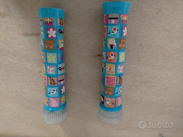 domino degli animali in legno, due pon pon, due memory ( abbastanza usati) e due caleidoscopi.