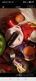 Borsone pieno di giochini accessori per cucina da bambini e cibi finti tutti in ottimo stato