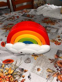 Vendo un gioco educativo a incastro a forma di arcobaleno. È ideale per lo sviluppo delle capacità cognitive e della motricità nei bambini.
