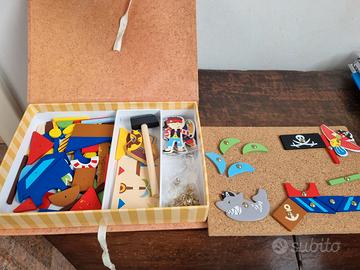 In dotazione: tavola di sughero, piccole parti in legno e immagini nella tematica dei pirati
