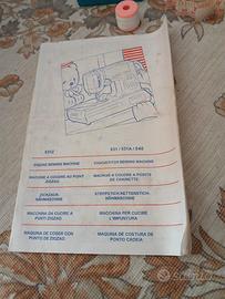 incluso scatola originale, macchina per cucire, un rotolo di filo, pedale da schiacciare per farla funzionare, metro da sarta, un ago, manuale di istruzioni.