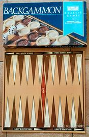 Gioco del BACKGAMMON, in scatola originale, completo di 2 tabelloni, 32 pedine (16 per ciascun colore) e 2 dadi.