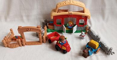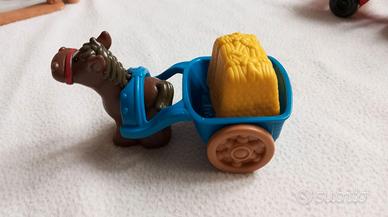 Fattoria sonora Fisher Price, la mangiatoia dei cavalli emette un simpatico suono ed il tappetino d'entrata se premuto suona una musichetta. Con personaggi e animali, trattore e carretto. Batterie nuove