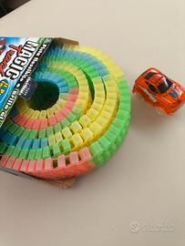 Contenuto: 1 auto rossa, 220 binari fluorescenti, 1 guida di montaggio e idee di costruzione, 1 tavola di 78 adesivi decorativi