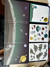 Bellissimo gioco magnetico Sergent Major a tema spazio e dinosauri, perfetto per i più piccoli! Include un quaderno con immagini, lavagnetta magnetica e tanti magneti colorati.