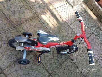 Una prima bici x bambini da due anni in poi come nuova con rotelle anticaduta smontabili,freno gomme e sellino nuovo. faccio provare posso spedire.