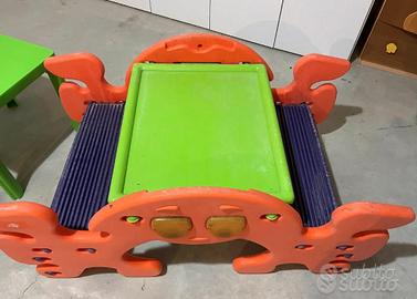 Gioco bimbo trasformabile può essere un dondolo ma se lo capovolgi si trasforma in due panchine con un tavolo da appoggio
