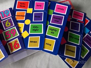 Gioco Bingo dei numeri per imparare i numeri in Inglese da 1 a 99. Un gioco divertente e stimolante per bambini dai 6 anni. Nuovo nella valigetta originale portatile. Perfetto per un’idea regalo intelligente.