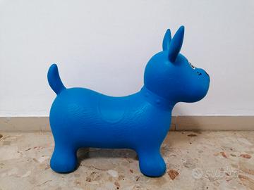 Gioco per bimbi cavalcabile. Soggetto: Cane, "blu". Adatto a bimbi + 10 mesi. Per interno ed esterno, in giardino.