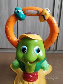 Tartaruga molleggiata che insegna numeri e colori accompagnata da musica e luci premendo i tre tasti colorati.