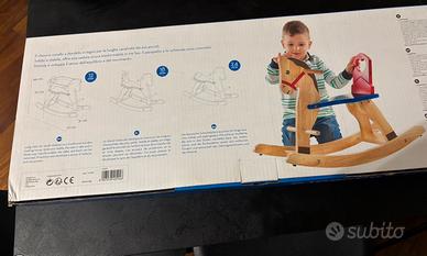 Solido cavallo a dondolo in legno per i più piccoli , offre una seduta sicura trasformabile in tre fasi.