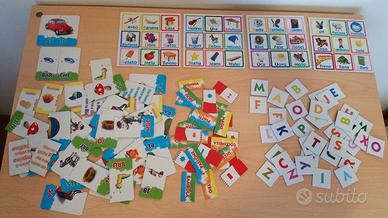 Un kit educativo completo ricco di tessere ad incastri autocorrettivi univoci per associare le iniziali alle parole, per ricostruire le immagini imparando a comporre parole e a dividerle in sillabe, 26 tessere ad incastro per imparare l'alfabeto.