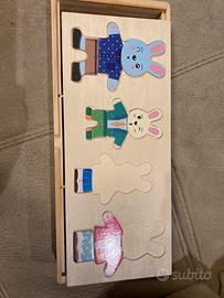 Famiglia conigli da vestire, per allenare la fantasia e la motricità fine. Adatta dai 2 anni