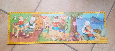 Il formato orizzontale del puzzle permette di rappresentare la favola in modo lineare. Un modo divertente per sviluppare le capacità creative e di immaginazione di ogni bambino.