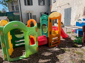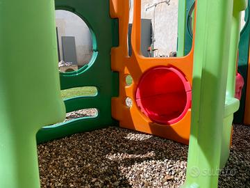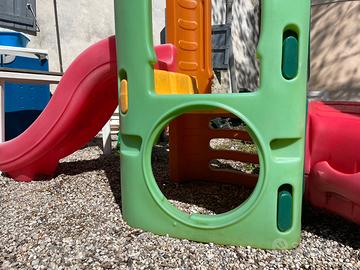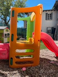 Bellissimo castello, ben tenuto e molto divertente della Little Tikes. Facilissimo da montare e smontare perche tutti i pezzi sono ad incastro. Plastica morbida, colarata e resistente. Composto da scivolo e tubo da attraversare. Bello per tutte le età.