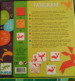 Tangram, ed. Djeco, riproduci le figure con le tessere. Ogni tessera ha la soluzione sul retro.