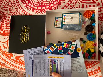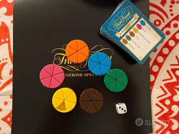 Gioco da tavola Trivial Pursuit in lingua italiana. Utilizzato, ma tenuto in buono stato. Mancante un pezzo per la pedina gialla, come in foto.
