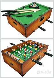 Calcetto e biliardo da appoggio, Gioco da tavolo 6 in 1, Calcetto balilla misure 51x31x16cm, Bigliardino da casa con giochi da tavola: ping pong, scacchi, dama, backgammon, Legno