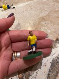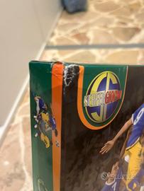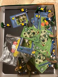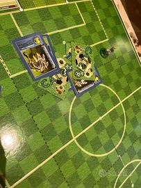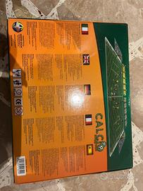 Gioco da tavolo di calcio, da 8 anni in su. Difficoltà: media-facile. Lingua: IT -EN - FR - DE - ES Contenuto: 1 regolamento (in 5 lingue); 1 piano di gioco (il campo di gioco diviso in caselle quadrate); 26 miniature calciatori (2 squadre di calciatori di 13 elementi ciascuna); 1 mazzo di carte "calciotto"; 2 schede/foglio delle carte in 4 lingue; 2 dadi con punteggio da 1 a 6 [1/6]; 1 dado più/meno [ /-]; 4 palloni (miniature); 2 plance/tabelle calciatori (dove porre la riserva e segnalare ammonizioni/espulsioni); segnalini gialli in plastica per indicare le ammonizioni. Il gioco non è mai stato usato, presenta solo qualche piccola imperfezione in due angoli della scatola esterna, come da foto.
