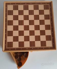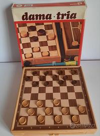 Gioco da tavolo Dama Tria. damiera in plastica con gioco della dama e del tris. Manca una pedina bianca.