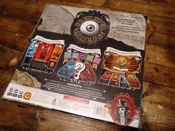 Nuovo, in italiano, sigillato. Qualcosa di malvagio non sta per arrivare... è già arrivato! In Dreadful Circus, i giocatori devono terrorizzare ed eccitare gli stanchi e annoiati abitanti della cittadina, offrendo inquietanti creature, pagliacci pazzi e deliziose prelibatezze. Il gioco consiste nel creare il perfetto mix di Artisti e Attrazioni, seducendo i propri avversari con vendite e offerte segrete. La chiave per la vittoria è gestire risorse rare e costruire la propria strada verso il successo. Come si gioca a Dreadful Circus Dreadful Circus è un gioco di carte basato sulla meccanica di set-collection, dove i giocatori cercano di creare il circo di maggior successo. Il gioco ha un twist unico: durante la partita, i giocatori acquistano carte che hanno regole speciali per il punteggio finale. Man mano che il gioco procede, vengono guadagnate sempre più carte e ogni giocatore sviluppa così le proprie regole per calcolare il punteggio finale. Ogni partita sarà unica e nessun giocatore al tavolo totalizzerà punti nello stesso modo. Perché acquistare Dreadful Circus Acquista Dreadful Circus per vivere un'esperienza di gioco unica e stimolante. Questo gioco di carte edito da Cranio Creations offre: Un gameplay coinvolgente e strategico Un'ambientazione intrigante e misteriosa Una meccanica di set-collection con un twist unico Partite sempre diverse grazie alle regole uniche di punteggio Non perdere l'occasione di aggiungere Dreadful Circus alla tua collezione di giochi da tavolo. Compra ora e inizia a costruire il tuo circo spaventoso!
