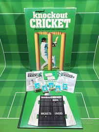 Gioco da tavolo cricket Knockout Cricket, pubblicato da Capri, originale d'epoca anno 1975. Età: 8+. 2/4 giocatori. Gioco usato ma in perfette condizioni e completo di ogni sua componente: 1 tabellone di gioco, 1 tabellone segnapunti, 12 pedine giocatori di cricket, 2 schermi di visualizzazione (completi di supporto), 5 mazzi di carte cricket completi (carte numerate da 1 a 144), 1 dado, 1 libretto delle istruzioni in inglese, 1 libretto delle istruzioni in italiano. Confezione originale inclusa ed in perfette condizioni.