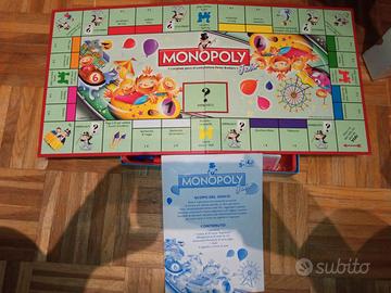 Vendo gioco da tavolo Monopoli Junior usato ma tenuto bene, completo di tutte le parti del gioco compreso le istruzioni. Lo scopo del gioco è costruire le vostre biglietterie sul maggior numero possibile di attrazioni del Luna Park e incassare dai vostri amici il costo dei biglietti di ingresso! Dai 5 anni in su dai 2 a 4 giocatori. Vendo a Ravenna città non spedisco