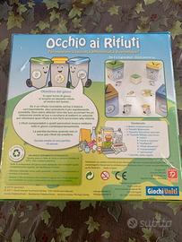 Occhio ai Rifiuti è l’edizione italiana del gioco della Druon Games dedicato ai più piccoli e all’importanza della raccolta differenziata. Perfino i componenti sono fatti di carta e cartone riciclati al 100%, e stampati con inchiostri vegetali per facilitarne lo smaltimento, e non è stata utilizzata colla per gli elementi tridimensionali.