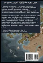 Il Manuale del Narratore è un libro di riferimento essenziale per ogni giocatore di PENSIERI IN SOGNO. Contiene le regole relative alla creazione e all’avanzamento dei personaggi e alle abilità speciali, all’esplorazione e al combattimento, e molto altro ancora. Grazie a questo libro potrete rivivere il romanzo nel mondo Heima di Dunia con l’obiettivo di cambiare il destino dell’intero continente. Esplorate antiche piramidi e letali arene. Combattete contro i demoni più terribili e impossessatevi di tutte le armi leggendarie. Mettetevi in viaggio verso territori inesplorati assieme ai vostri compagni per accrescere la vostra esperienza e il vostro potere. Il mondo di Dunia ha bisogno di eroi. Sarete voi a rispondere alla chiamata?
