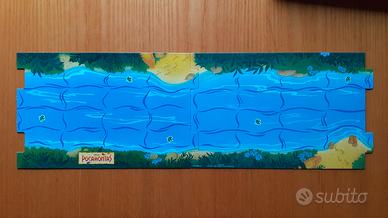 Contiene 2 tabelloni di gioco, 4 pedine, 4 canoe, 4 supporti per le pedine, 2 ostacoli, 12 gettoni foglia e un mazzo da 44 carte.