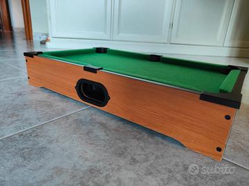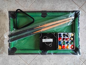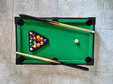 Biliardo - gioco da tavolo. Comprende tavolo da biliardo, 15 palline colorate, una palla battente, 2 stecche e un triangolo.